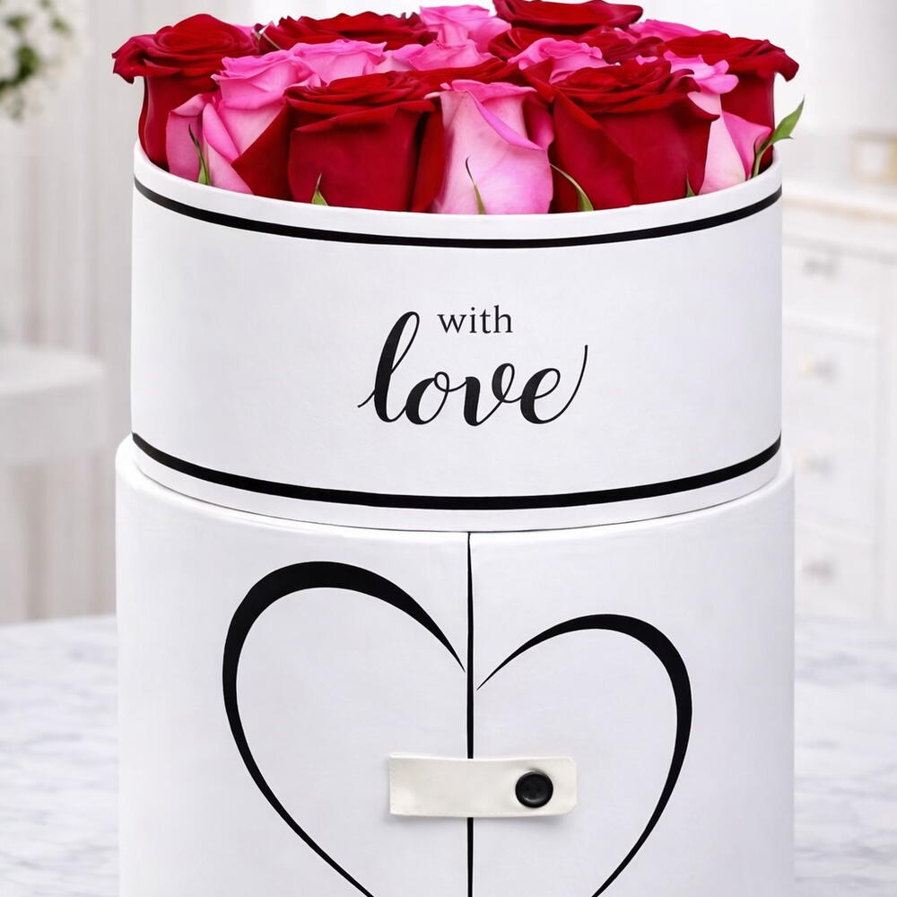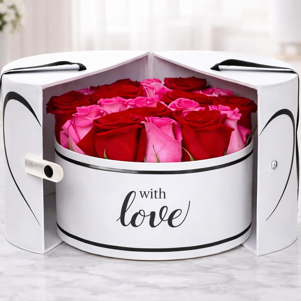 12 Red Roses 13 Pink Roses Beautifully arranged in a white love box