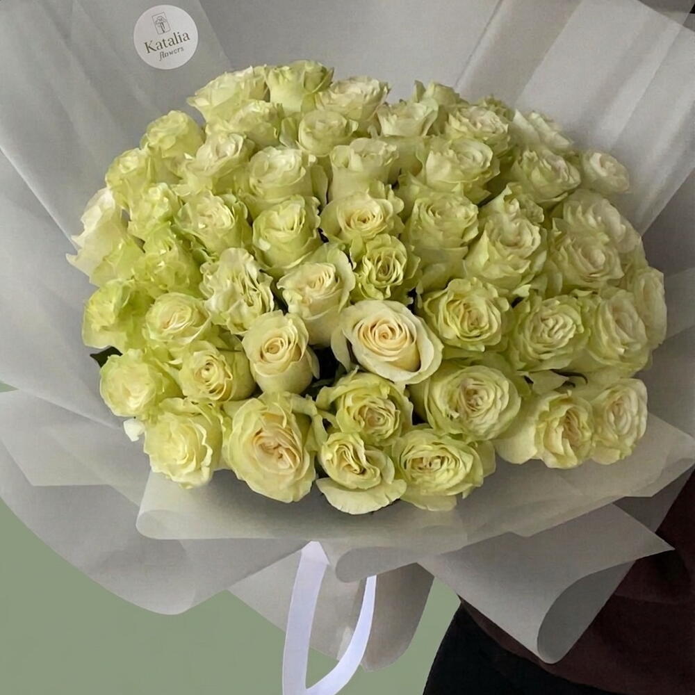 Presenting an elegant single bouquet under the category of باقات أحادية, manifesting grace and purity with 49 pieces of White Mondial, delicately curated for a captivating allure. This lush bouquet is meticulously wrapped in 5 pieces of premium Korean frosted waterproof wrapping that adds enduring beauty and ensures freshness. Moreover, the posh ensemble is effortlessly tied together with 2 pieces of white satin ribbons that add an extra touch of sophistication. This bouquet isnt just an item, its a timeless piece of art crafted with passion and precision.