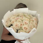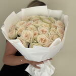 Soft blush roses wrapped in timeless white — pure elegance in every petal. A bouquet made to impress and express love effortlessly.