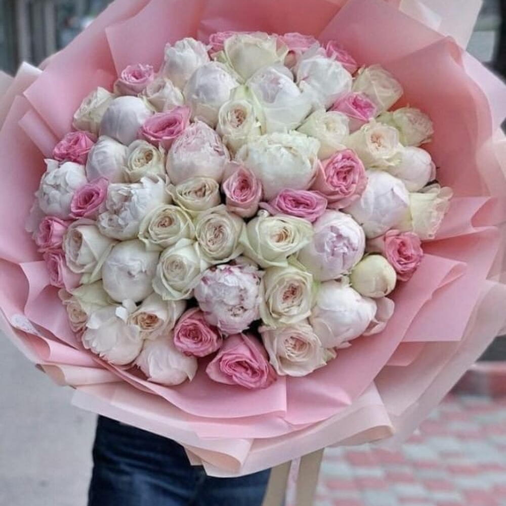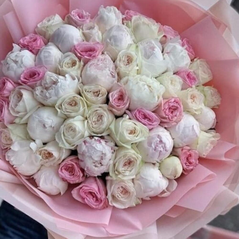 white peonies - 20 pcs wrapping paper - 6 pcs white ohara - 21 pcs pink o'hara - 20 pcs