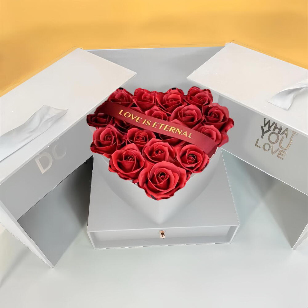 Immerse yourself in the timeless elegance of 19 stunning red roses, beautifully arranged in a pristine white surprise box. This floral ensemble delivers beauty in the most breathtaking fashion, making it the ideal gift for special occasions, memorable moments, or just to brightlyn up anyones day. A clear testament that true love and affection are always in-style.