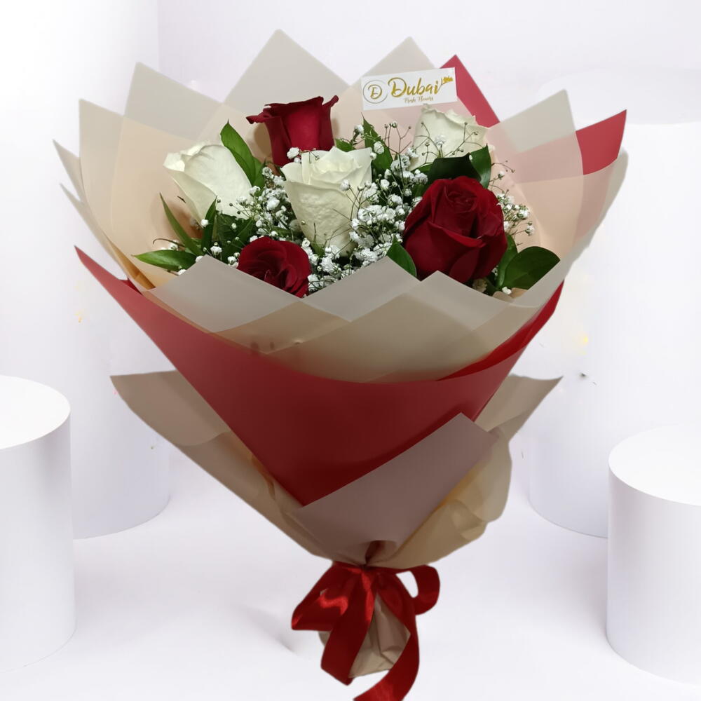 baby breath - 2 pcs rescus - 4 pcs roses - 6 pcs