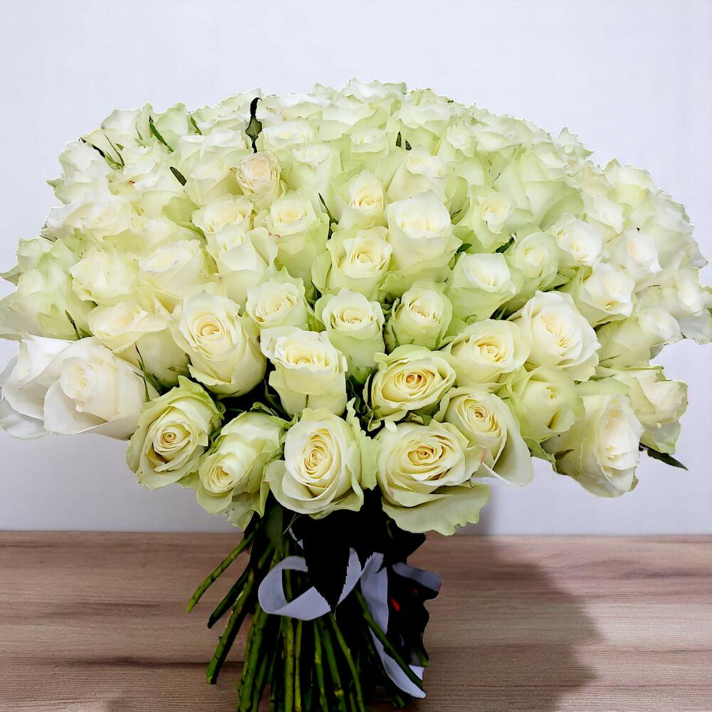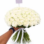 An exquisite expression of purity and elegance, this 101-piece white rose bouquet is a breathtaking symphony of pristine blooms. Each immaculate rose whispers timeless beauty, creating a stunning arrangement that radiates sophistication and grace. Its a truly luxurious and captivating gift for those special moments that deserve an extraordinary touch.
