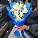 Surprise your loved ones with this elegant white rose bouquet wrapped in blue. Idea for all occasions. flowers UAE bouquet Dubai flower delivery UAE roses Dubai gifts UAE flower delivery Abu Dhabi Same day Valentine flowers UAE