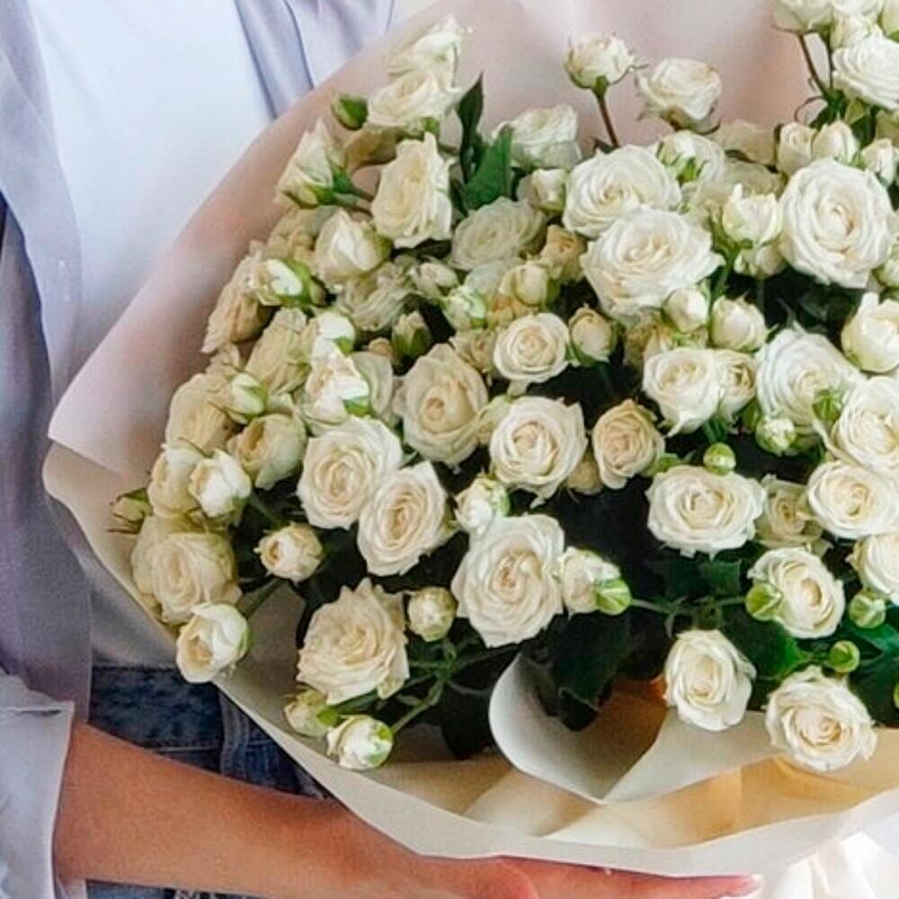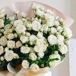 Elegant and timeless, this bouquet of white spray roses radiates purity, charm, and refinement. The lush, multi-bloom stems create a voluminous, airy composition that feels both classic and fresh. Perfect for weddings, anniversaries, or any meaningful moment, this arrangement is a symbol of sincerity and gentle elegance. To ensure long-lasting freshness, trim the stems diagonally every 2–3 days and place them in clean water. Avoid direct sunlight and keep away from ripening fruits to preserve their beauty for as long as possible. You can choose any color of the rose. Write what color of rose you need and we will select for you.