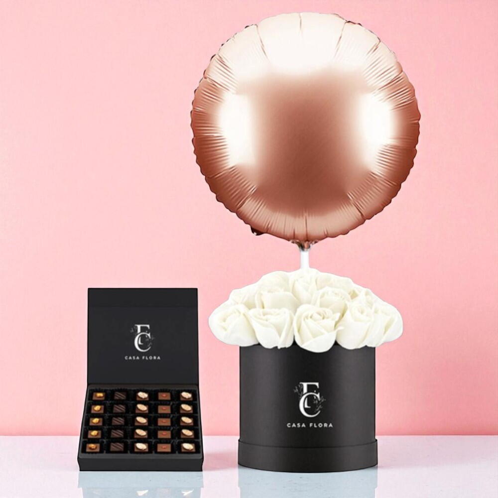 rose white - 30 pcs balloon - 1 pcs chocolate box - 400 g
