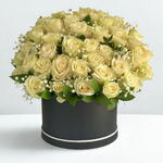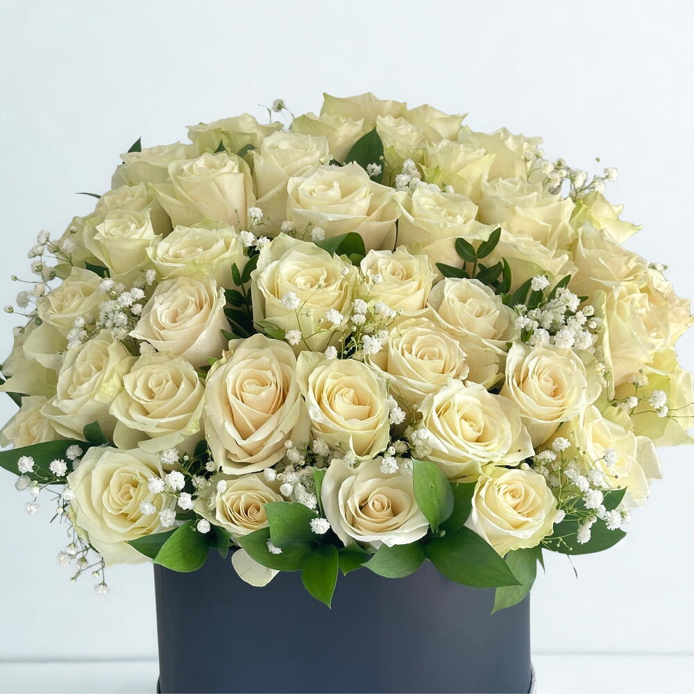 White rose - 41 pcs black box - 1 pcs foil balloon of your choice. - 1 pcs