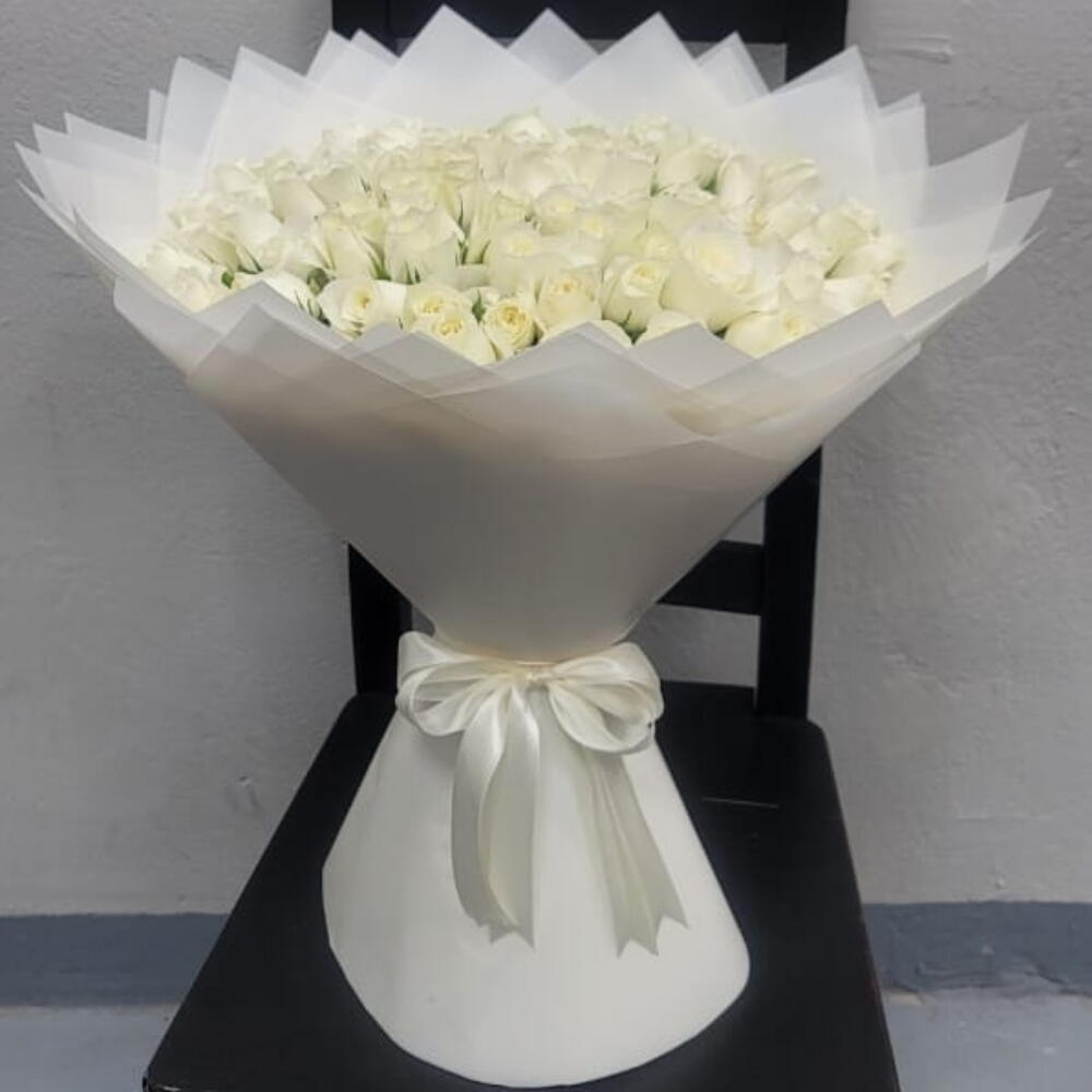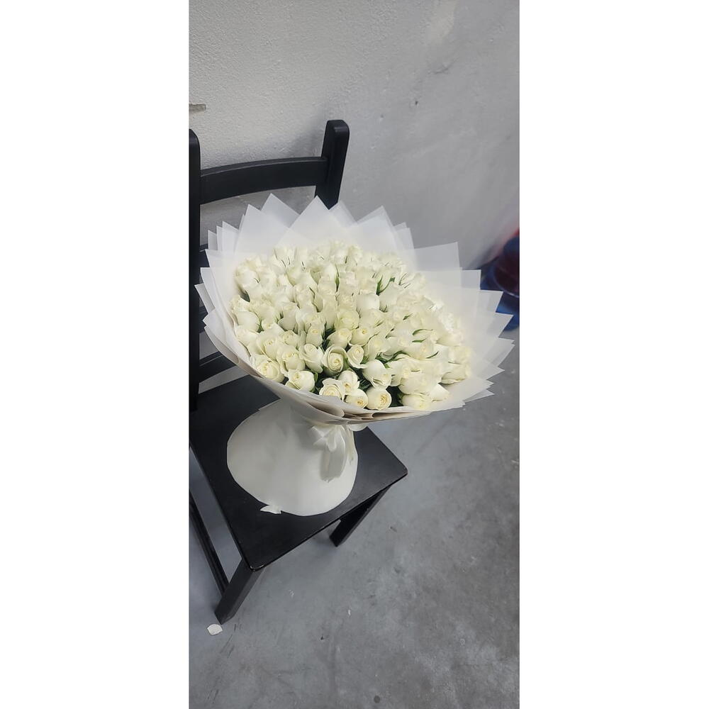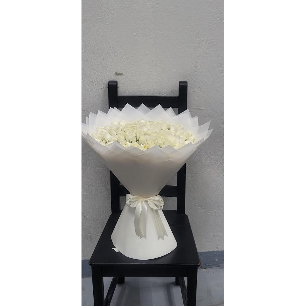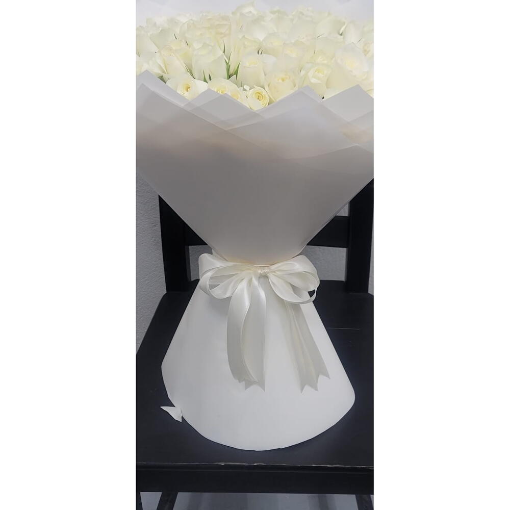 white ribbon bow - 1 pcs white roses - 101 pcs white cover - 10 pcs