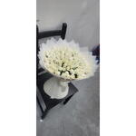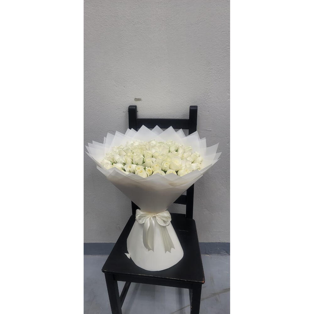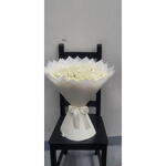 A bouquet of white roses exudes elegance, purity, and timeless beauty. The delicate petals, soft yet structured, unfold in perfect symmetry, creating a sense of grace and serenity. White roses symbolize new beginnings, remembrance, and deep respect, making them a popular choice for weddings, anniversaries, and memorials. Arranged in a bouquet, these roses can be complemented with lush greenery like eucalyptus or baby’s breath, adding texture and contrast. Wrapped in satin ribbons or placed in a crystal vase, a white rose bouquet embodies sophistication and heartfelt emotion, perfect for expressing love, admiration, or condolences.