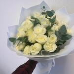 white roses - 31 pcs and white warpping papper in a bqt - 5 pcs