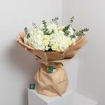 Introducing the stunning "White Roses & Hydrangea" bouquet - a beautiful arrangement that exudes grace, elegance, and sophistication. This bouquet features a carefully curated selection of the finest white roses and hydrangeas, arranged in a lush and bountiful display. The contrasting textures of the roses and hydrangeas work together harmoniously, creating a visually stunning arrangement that is sure to impress.