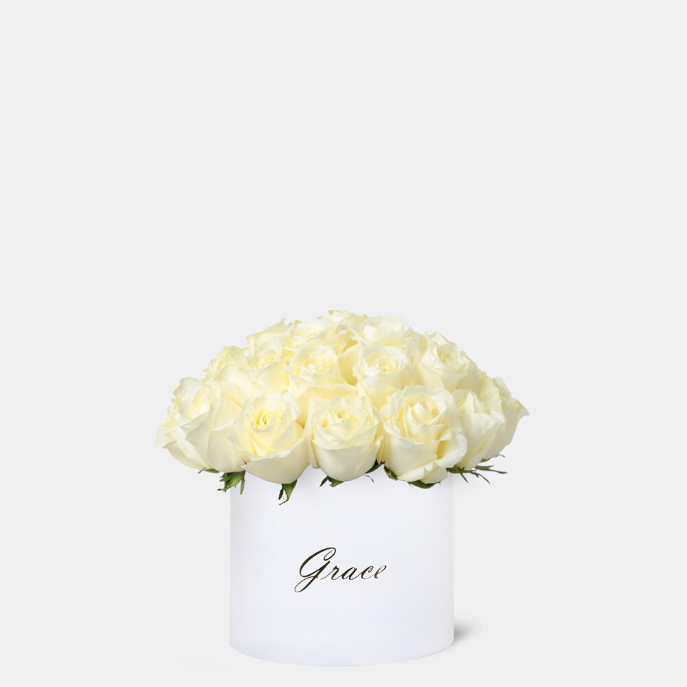 White Roses beautifully arranged in an elegant box, offering a timeless and personalized gift that speaks to every occasion.
