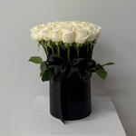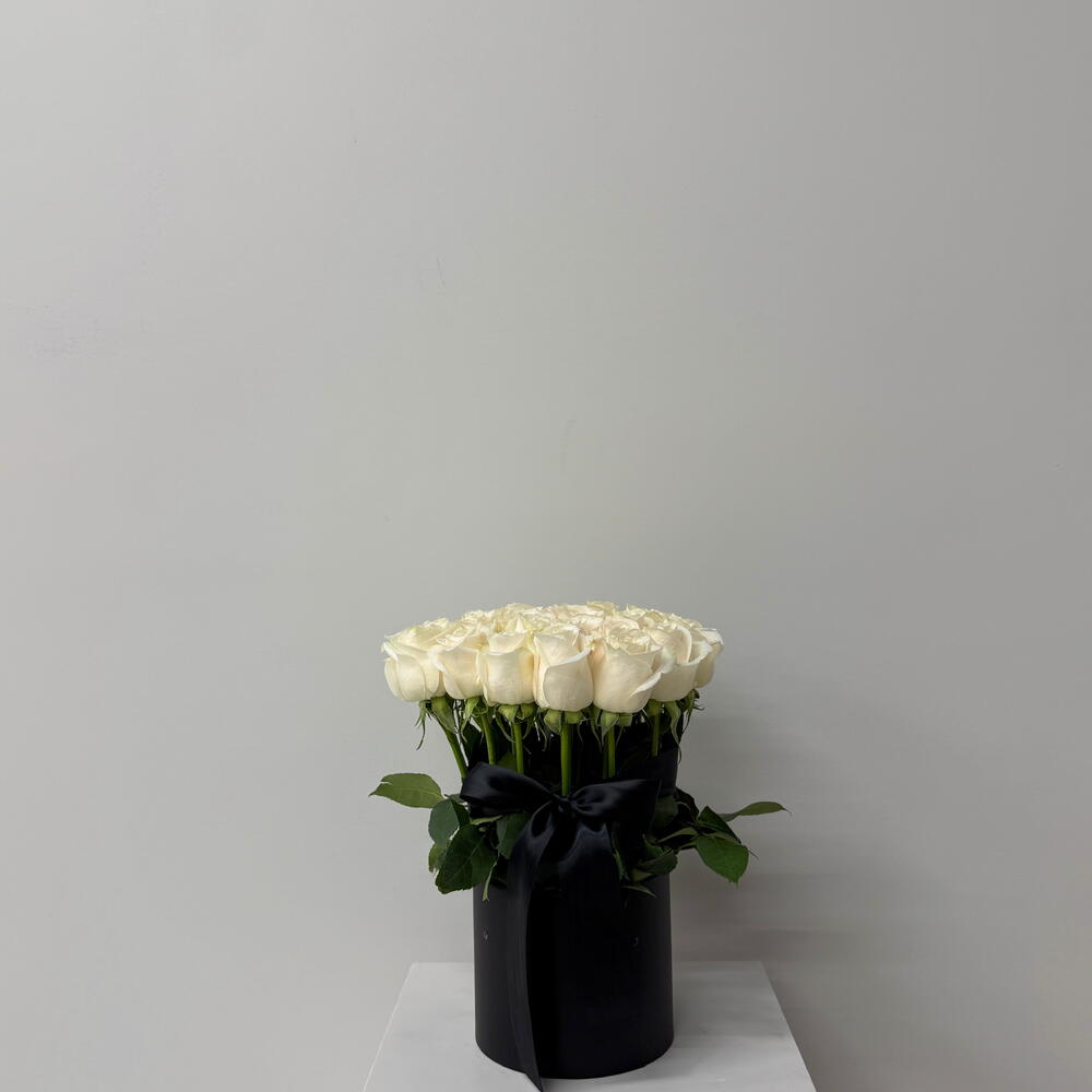 White rose - 29 pcs black box - 1 pcs black bow - 1 pcs