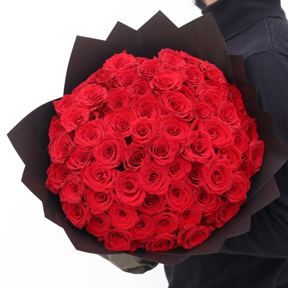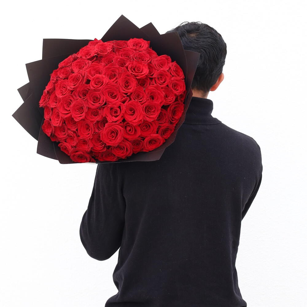 Red Roses are considered a symbol of Love and Passion, making them a popular choice for Valentines Day, Anniversaries and other Romantic Occasions. The size of the Bouquet is Quite Big and is ideal for a Grand Romantic Gesture or Special Occasion like a Marriage Proposal or a Milestone Anniversary. The White Wrapping adds a touch of Purity, Express your feelings with your loved ones with this Marvelous Gesture of Pretty and Red Flowers. Bouquet includes: • Red Roses: 81 White Wrapping Paper Disclaimer: Colors may vary depending on the season. Care tips : Flower Type - Replenish the water frequently. - Change the water entirely every 2-3 days. - Trim at least a half inch of stem off vour flowers before you put them in a vase and each time you change the water. - Keep your flowers away from heat and bright light. - Avoid sitting your flowers beside ripening fruit or vegetables, especially bananas, and apples. Note: Flowers can last up to 7 days if the above care instructions are followed and well maintained, the color of the flowers may vary depending on the season.