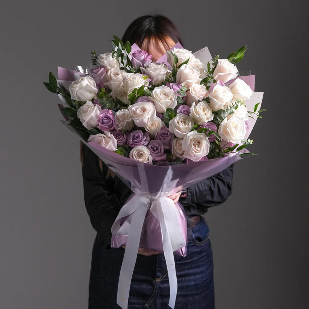 Wisdom is a thoughtful bouquet crafted to brighten someone’s day and convey gratitude, appreciation, or heartfelt wishes. This charming arrangement features 30 pristine white blooms paired with 30 rich purple flowers, beautifully accented with fresh eucalyptus stems for texture and freshness. The combination of soft whites and deep purples creates a visually striking yet elegant bouquet, perfect for celebrating birthdays, saying thank you, or simply letting someone know you care. Wrapped with love, Wisdom exudes warmth, elegance, and a personal touch, making it a perfect gift for friends, family, mentors, or anyone special. Its purple and white palette with greenery conveys thoughtfulness, care, and sophistication, turning a simple gesture into a memorable moment. Use Cases / Gifting Ideas Thoughtful birthday gift for friends, family, or loved ones Thank you gesture for someone special “Just because” bouquet to brighten someone’s day Elegant gift for mentors, teachers, or friends Seasonal floral arrangement to add beauty and joy at home