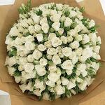 A bouquet that speaks of grace and purity, this stunning arrangement of 101 white spray roses is a timeless expression of beauty and sincerity. Perfect for weddings, anniversaries, or simply to brighten someone’s day, the gentle cream-white tones and abundant blooms create an unforgettable visual and emotional impact. Each stem carries multiple delicate buds, carefully hand-tied and wrapped in natural kraft paper to highlight their elegance. To keep this bouquet fresh longer, trim the stems diagonally by 1–2 cm before placing them in a clean vase with cool water. Change the water daily, and avoid direct sunlight, heat, or cold drafts. Add flower food if available for extended freshness.