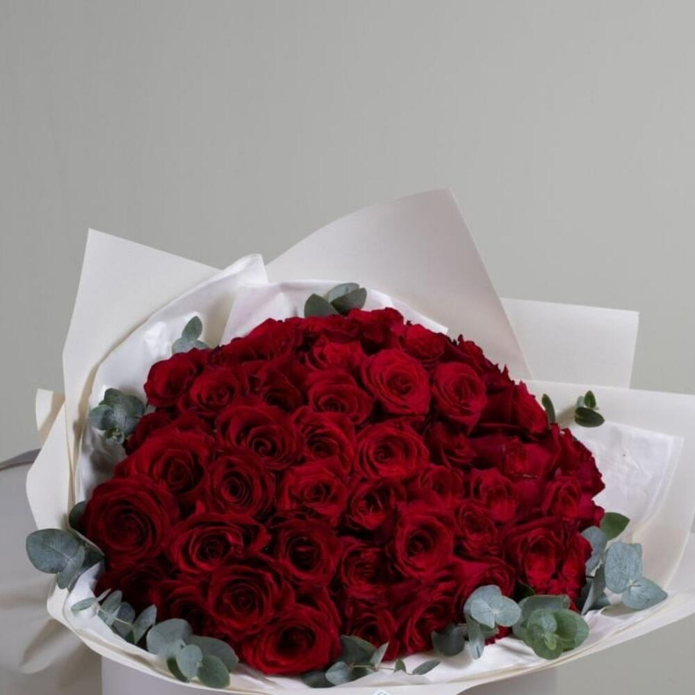 Red rose - 101 pcs Eucalyptus - 8 pcs
