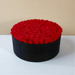 Des - Arrangement of 90 to 120 Red Roses in XXL Black Round Box