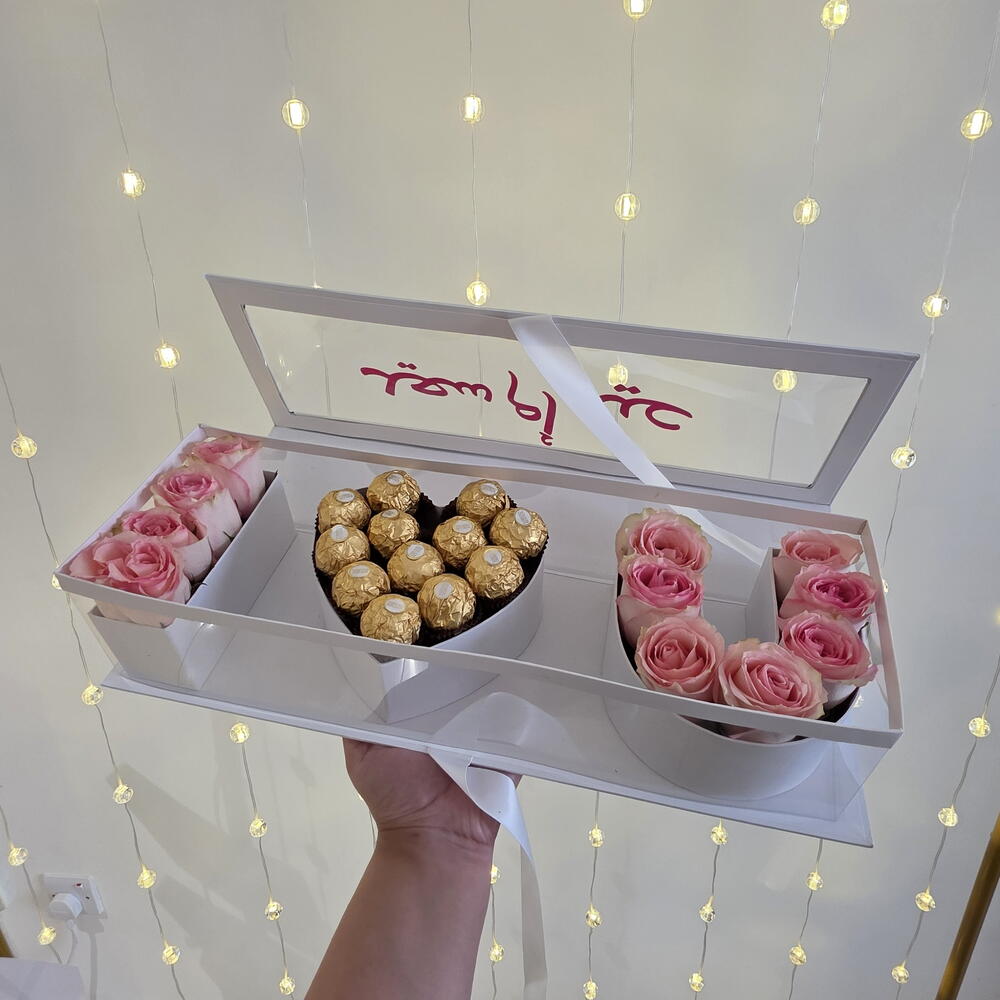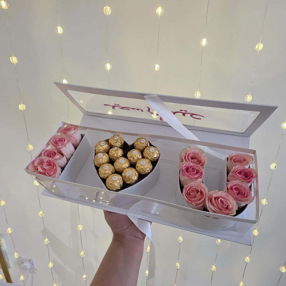 i love you box - 1 pcs pink roses - 12 pcs chocolate balls - 12 pcs