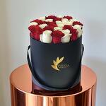 The combination of these two colors is a powerful symbol of balance, strength, and the blending of emotions. This arrangement featuring both red and white roses is a versatile choice that can be used to convey a range of sentiments, from love and passion to friendship and support.