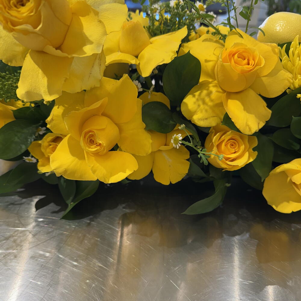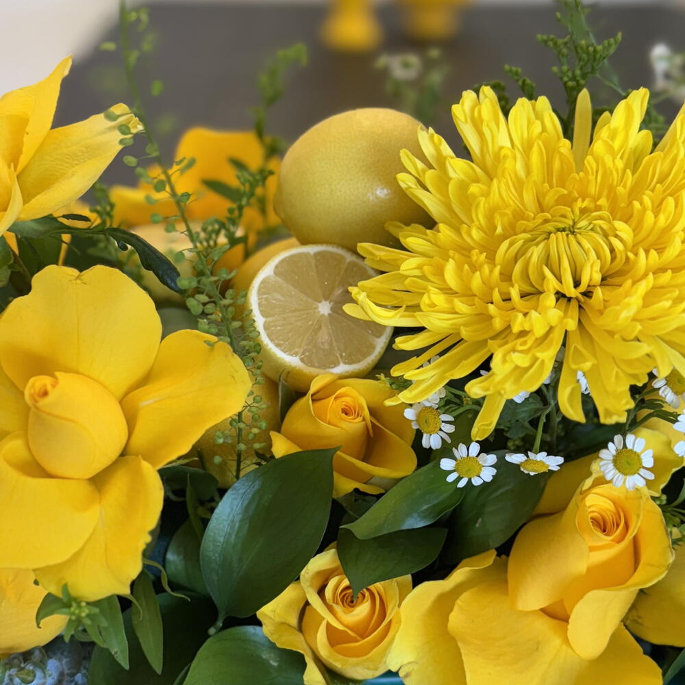 Green leaves - 5 pcs rose - 30 pcs lemon - 6 pcs comomiles - 3 pcs
