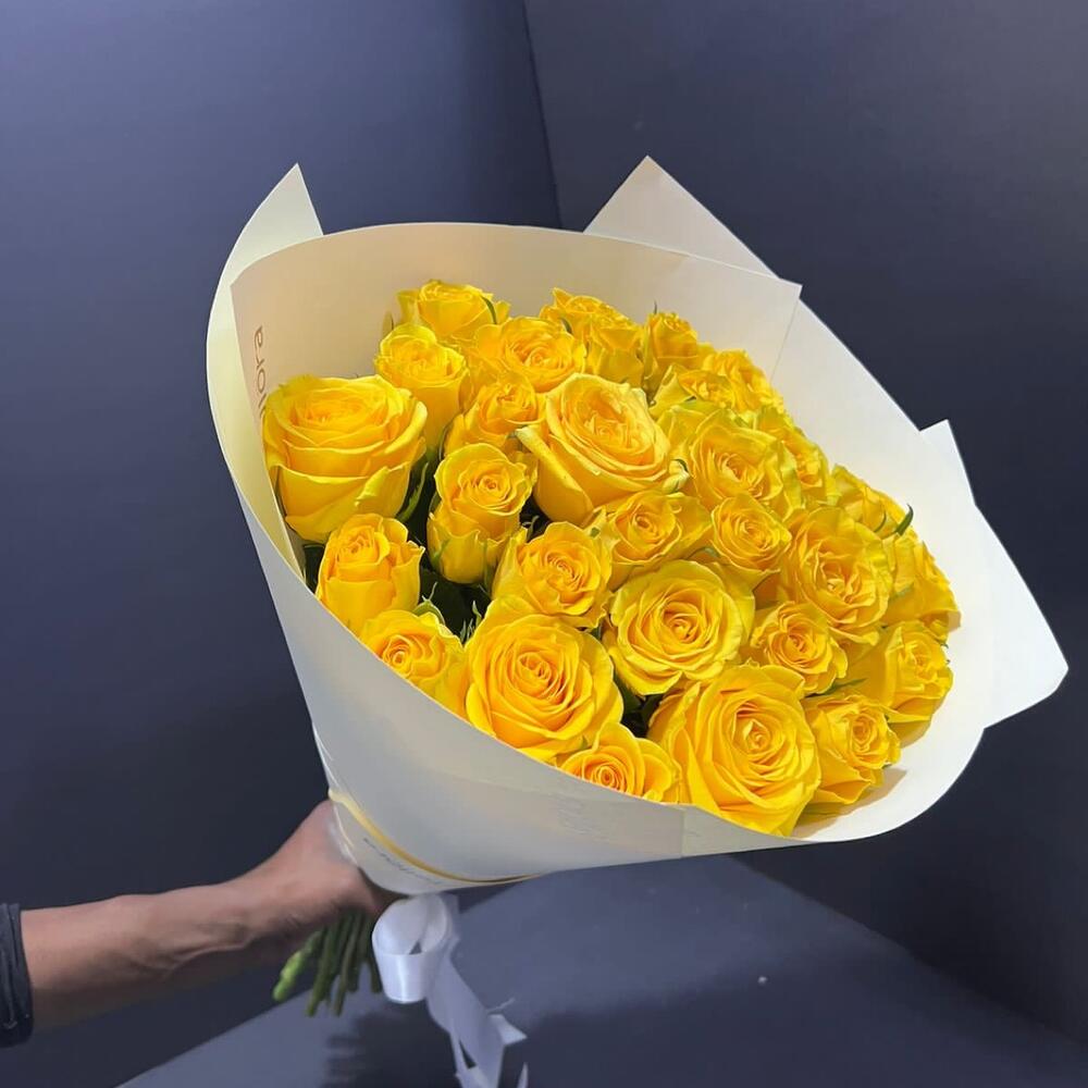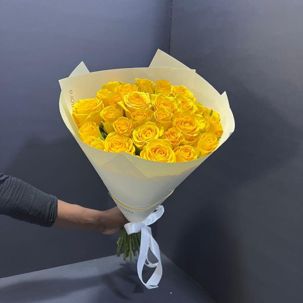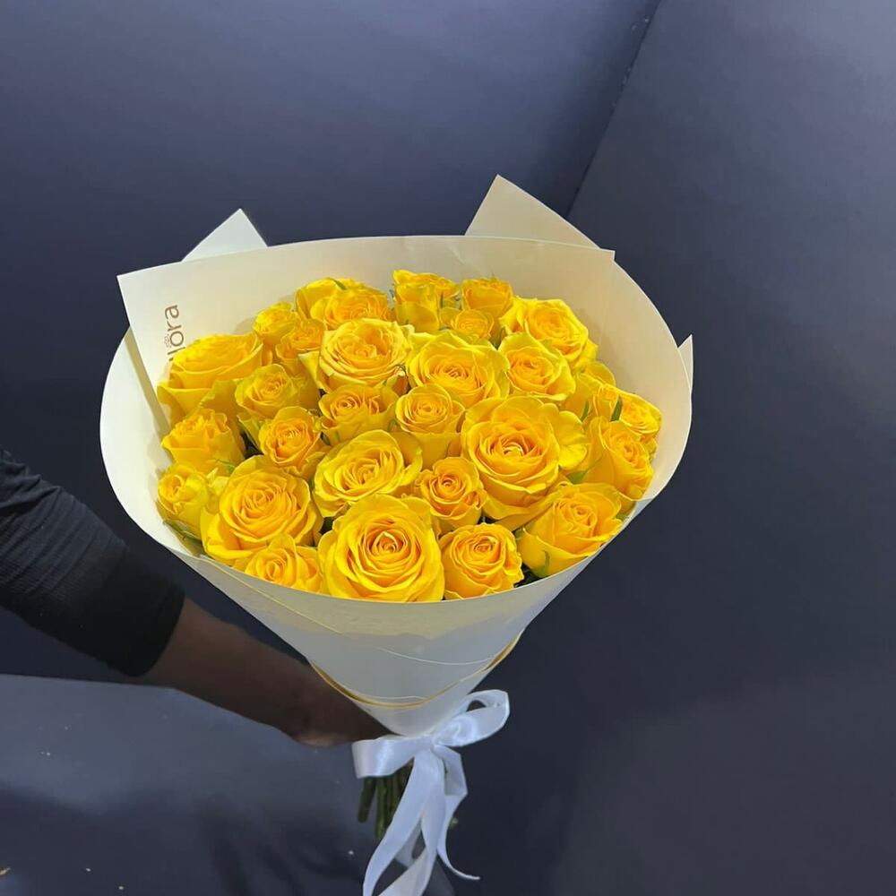 Yellow rose bouquet in premium white wrapping papper