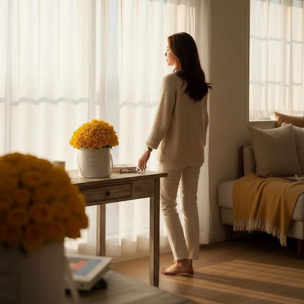 A luxurious box filled with 51 vibrant yellow roses, radiating warmth and joy. Perfectly arranged to brighten any celebration with a touch of elegance and sunshine.