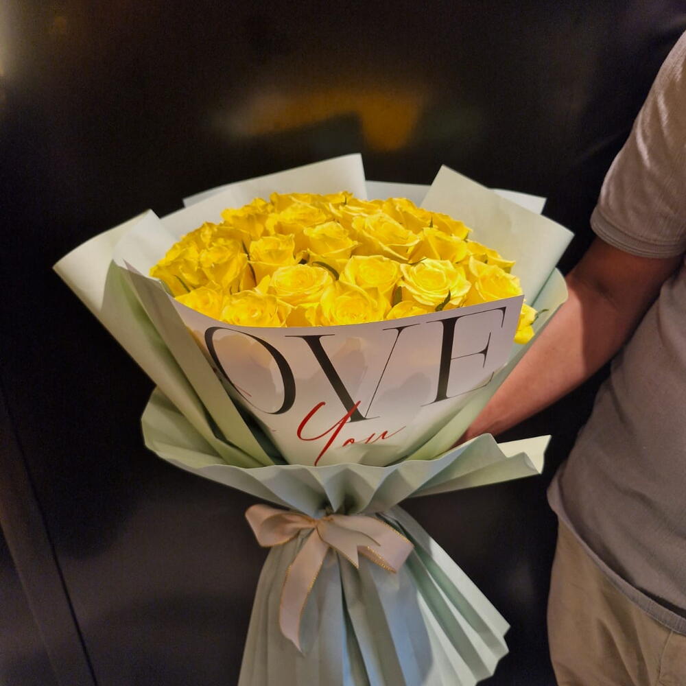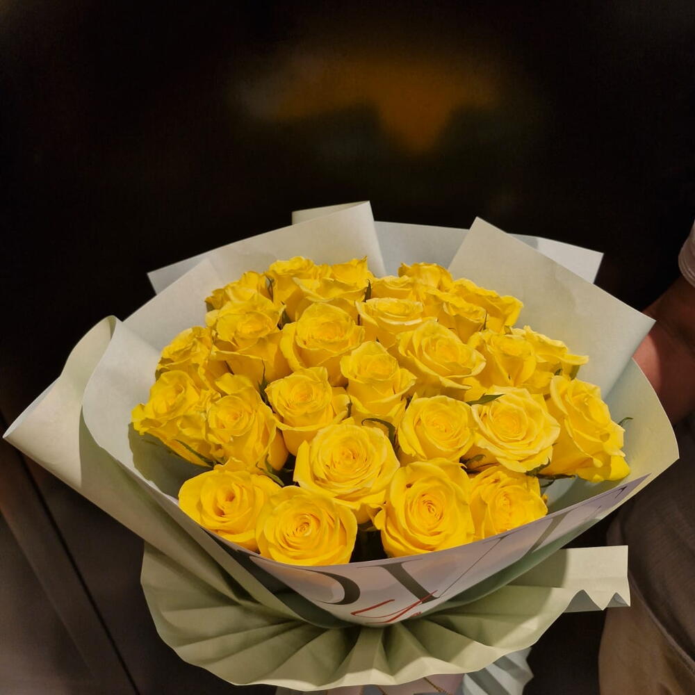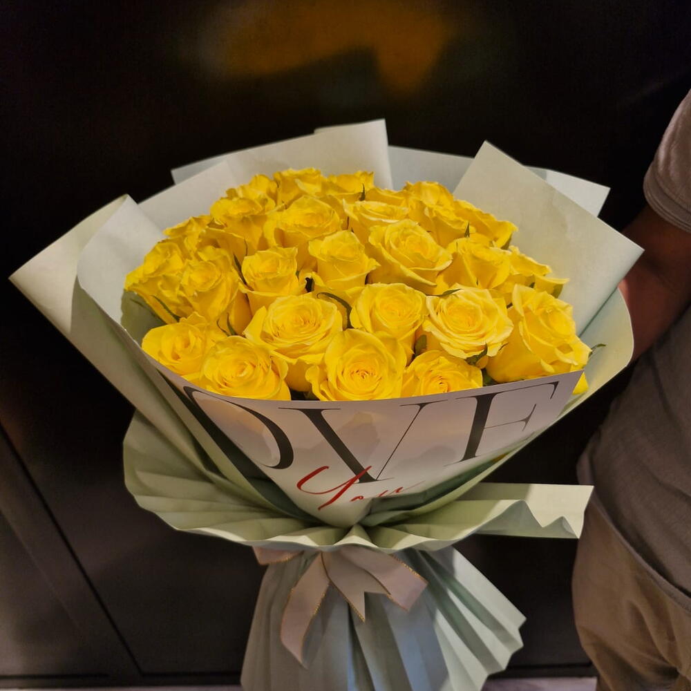 Unwrap the golden sunshine with this exquisitely crafted Mono Bouquet. Comprising a total of 30 radiant yellow roses, this bouquet emanates positivity and warmth like a sunny day. Each rose is hand-selected for its vibrant hue and freshness, ensuring a captivating visual appeal. A perfect choice for any occasion, this Mono Bouquet is an unforgettable testament of your sentiments.