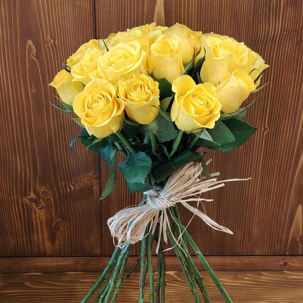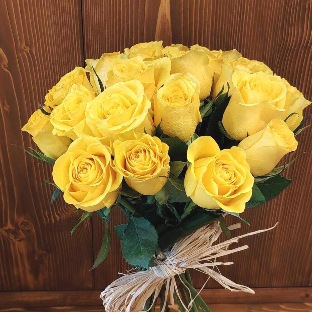 This bouquet of sunny yellow roses radiates happiness and positivity. Tied in a rustic style with natural raffia, it’s a perfect gift for a bright celebration, a gesture of gratitude, or simply to bring cheer to someone’s day. Its simplicity and elegance make it a versatile choice that suits both casual and special occasions. To prolong its freshness, trim the stems diagonally every two days, refresh the water, and keep the flowers away from direct sunlight and heat sources.