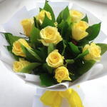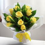 Brighten any day with this cheerful bouquet of yellow roses, a symbol of friendship, joy, and positivity. Arranged with lush greenery and wrapped in crisp white paper, its a thoughtful gift for birthdays, congratulations, or simply to spread sunshine. The vibrant yellow blooms are sure to bring a smile to any face. To keep the flowers fresh, trim the stems every two days and change the water regularly. Avoid placing the bouquet in direct sunlight or near heat sources. Proper care ensures the roses stay vibrant and fragrant longer.