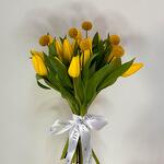 yellow craspedia - 7 pcs yellow tulip - 15 pcs