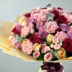 pink carnations - 15 pcs pink spray rose - 20 pcs red roses - 20 pcs peach roses - 20 pcs purple roses - 25 pcs