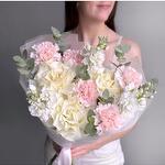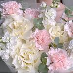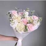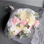 pink carnations - 5 pcs white matthiola - 3 pcs french rose white - 3 pcs