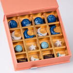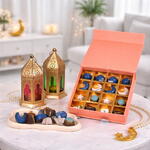 Inspirée par la beauté des nuits du Ramadan, la collection de chocolats Celestial Crescent propose un assortiment élégant de chocolats artisanaux en forme de lunes, d'étoiles et de sphères célestes. Présentés dans un bleu marine profond, un ivoire doux et avec de subtils accents dorés, chaque pièce reflète le charme d'un ciel étoilé. Laissez-vous séduire par une sélection soigneusement élaborée de saveurs gourmandes, comprenant pistache, caramel et fruits à coque de première qualité, offrant un équilibre parfait entre une douceur crémeuse et des textures riches de fruits à coque à chaque bouchée. Soigneusement disposée dans une boîte cadeau magnétique corail premium avec des séparateurs dorés luxueux, cette collection fait une déclaration sophistiquée pour les rassemblements d'iftar, les cadeaux du Ramadan ou les célébrations de l'Aïd. Un parfait mélange d'art et de gourmandise — conçu pour sublimer vos moments festifs avec élégance et douceur.