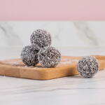 Truffes véganes au chocolat intense, enrobées de noix de coco. Tellement bonnes qu'elles devraient être illégales. Lot de 4.