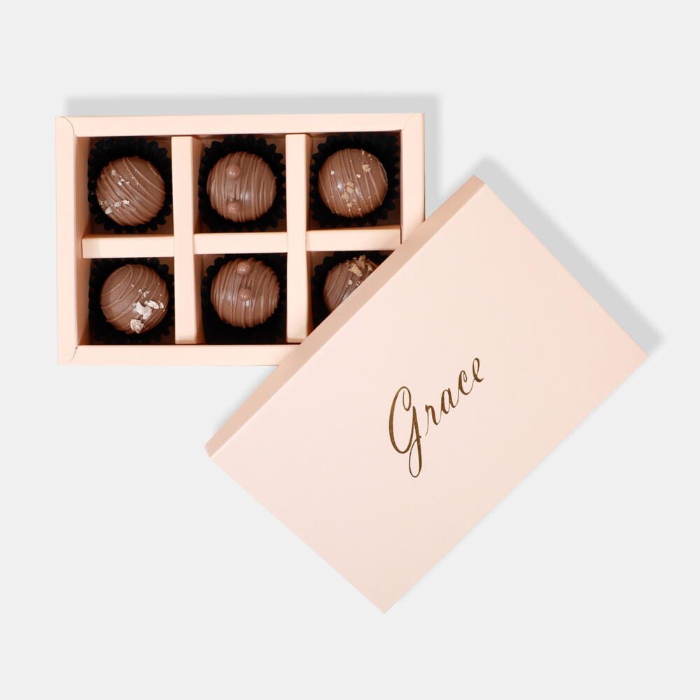 Laissez-vous tenter par le plaisir exquis de nos 6 truffes au chocolat décadentes, une boîte de six délices faits à la main qui fondent en bouche.