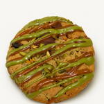 Biscuits moelleux et épais à la new-yorkaise, préparés dans une riche pâte au chocolat, fourrés d'une crème de pistache onctueuse et nappés d'un caramel fondant. Bords croustillants, cœur fondant et une saveur riche, sucrée et aux notes de fruits à coque.