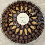 A big tray of mixed chocolate selection with a phrase that says “glad you’re back”