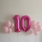 Créez une belle célébration marquante avec cet ensemble de ballons chiffre dix rose. Comprend un ballon chiffre en aluminium rose de 40 pouces et 10 ballons en latex de 12 pouces, tous gonflés à l'hélium, parfaits pour la décoration d'anniversaire et les décors photo.