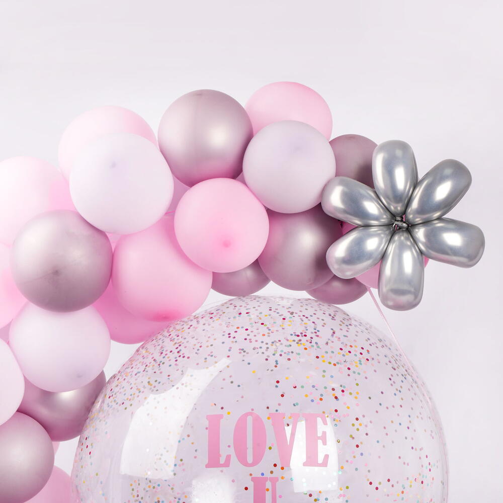 1 Ballon en feuille Je t'aime Maman 28 Ballons en latex rose 16 Ballons en latex violets 12 Ballons brillants couleur or rose 3 Ballons argentés en forme de fleur Magnifiquement arrangé