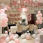 - 100 ballons au plafond - 2 bouquets de 10 ballons chacun - lettres joyeux anniversaire - ballon chiffre - 30 ballons au sol
