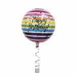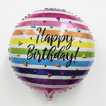 Ballon métallique rayé arc-en-ciel Joyeux anniversaire