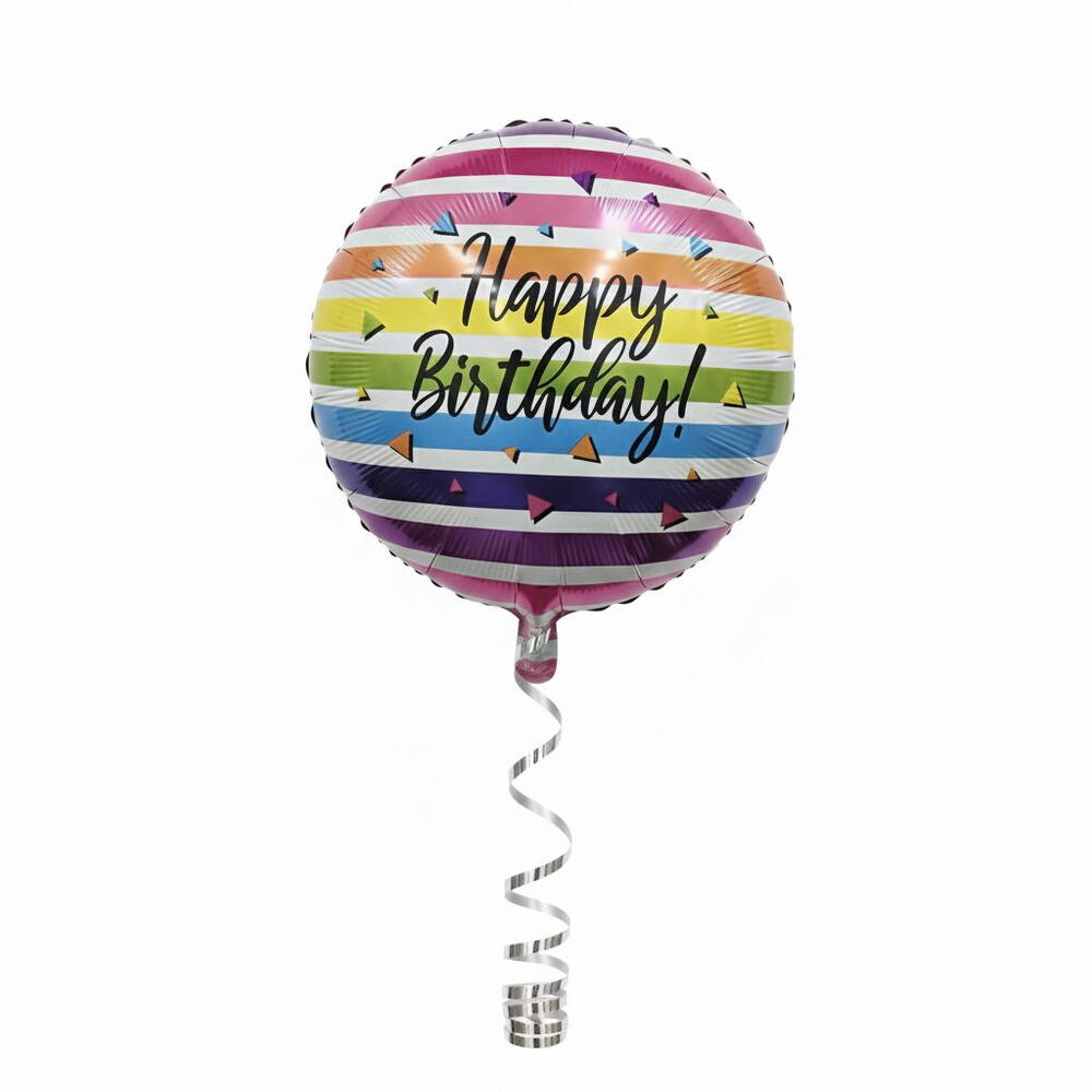 Illuminez n'importe quelle célébration avec notre ballon «Joyeux anniversaire !» rayé aux couleurs de l'arc-en-ciel. Ce ballon rond métallisé et vif est le moyen parfait d'ajouter une touche de couleur et de joie à votre journée spéciale.