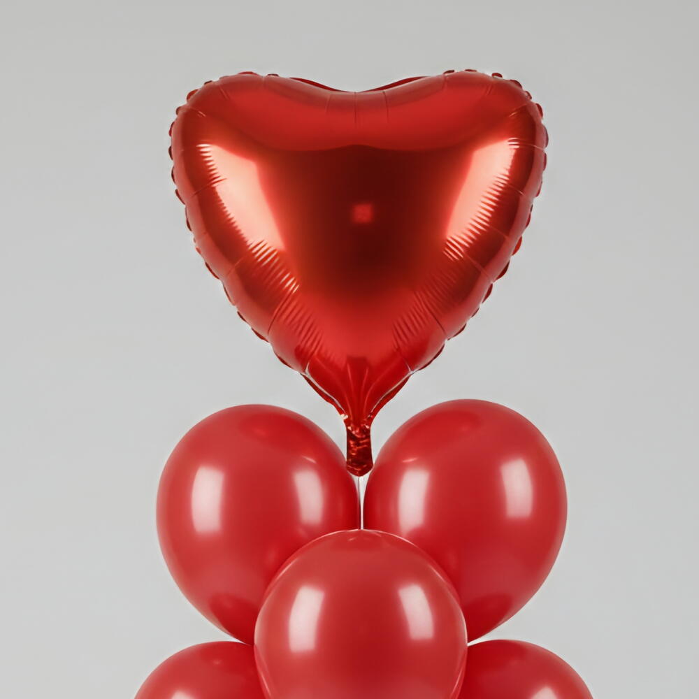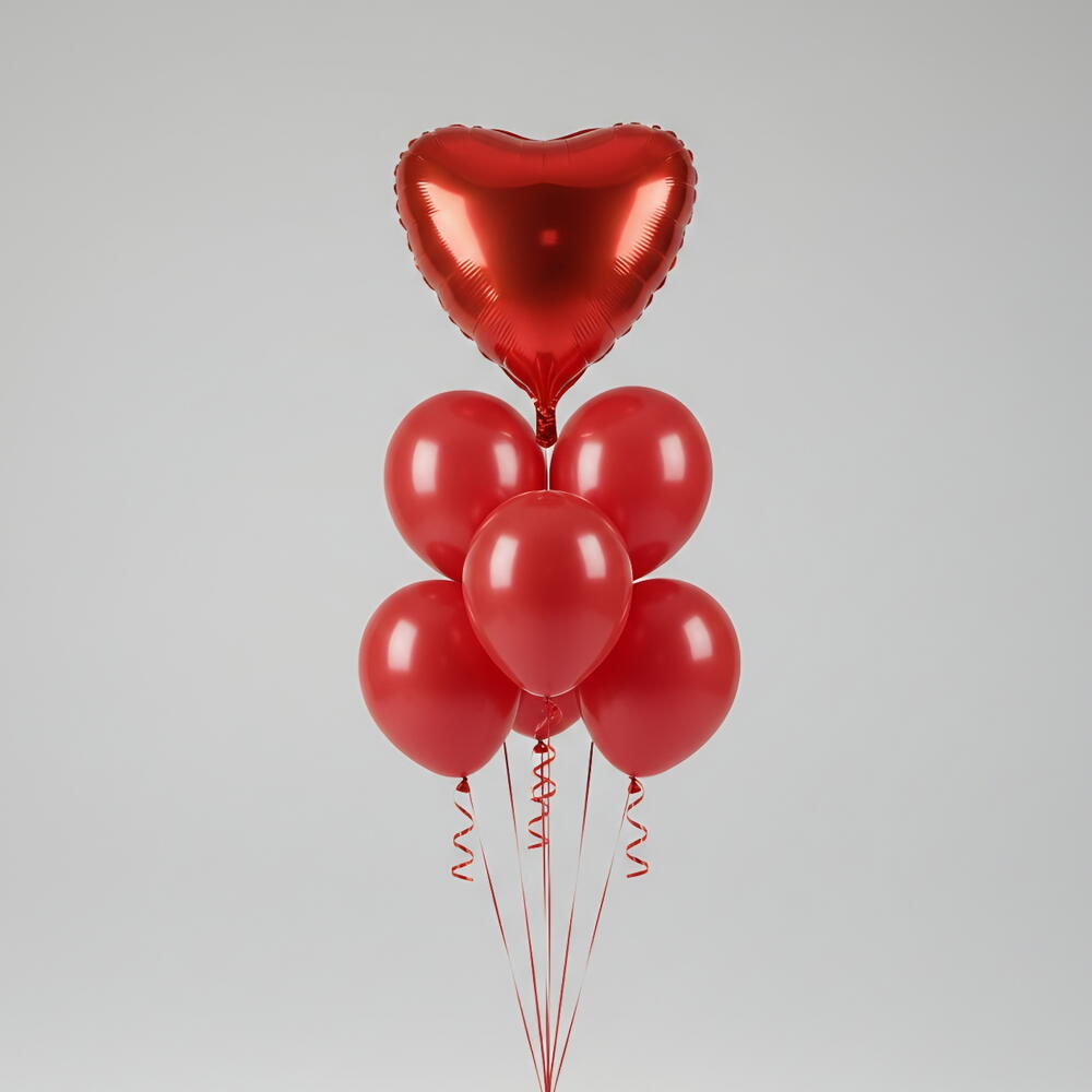 Célébrez la Saint-Valentin avec notre bouquet de ballons classique. Il contient 6 ballons en latex et 1 ballon en aluminium en forme de cœur de 45 cm (18 pouces), gonflé à l'hélium. Durée de flottaison : 8 à 24 heures