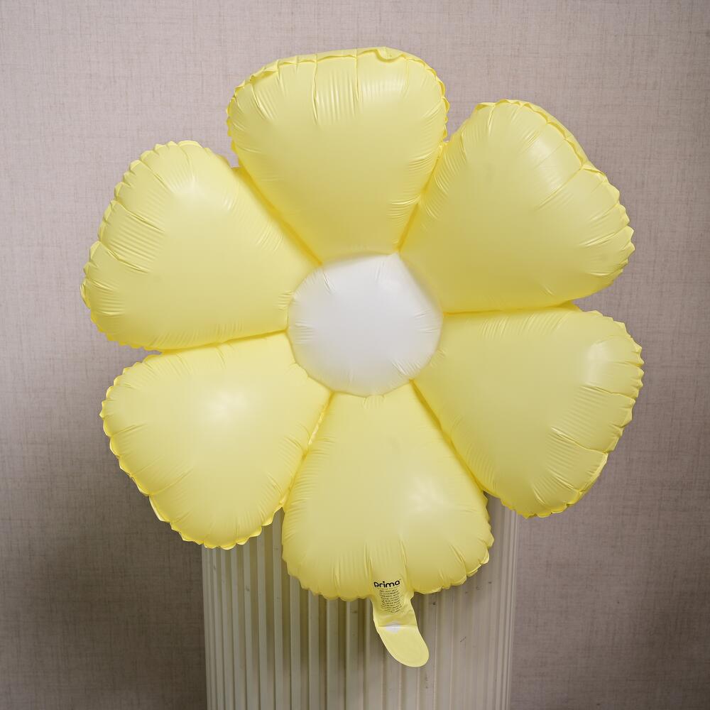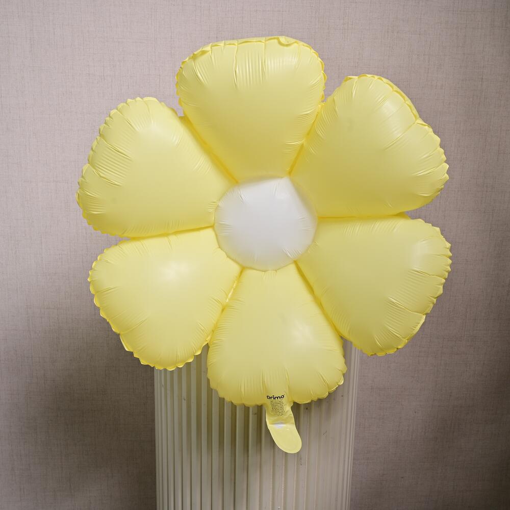 Ballon métallisé en forme de marguerite jaune vif, parfait pour des décorations gaies.
