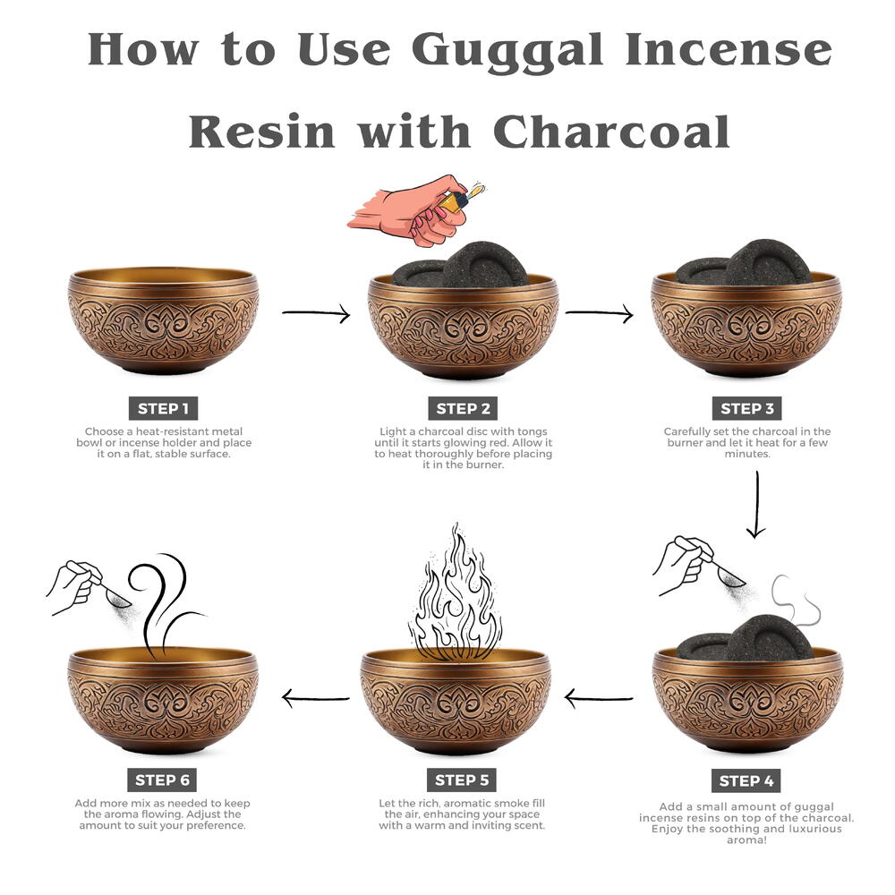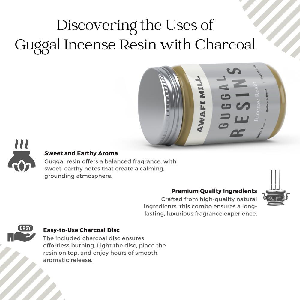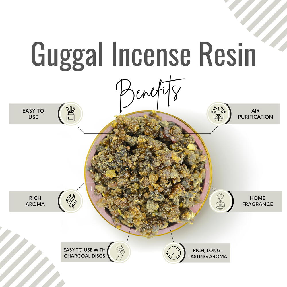 Each package comes with a complementary charcoal tablet Guggal resins, an edible commiphora gum resin offering a unique aromatic journey Use these high-quality guggal resins for aromatic burning Our guggal resins are free from additives, ensuring a natural and pure experience with every use
