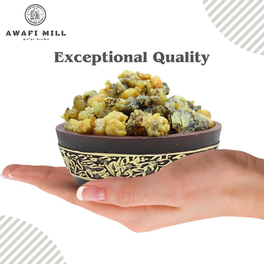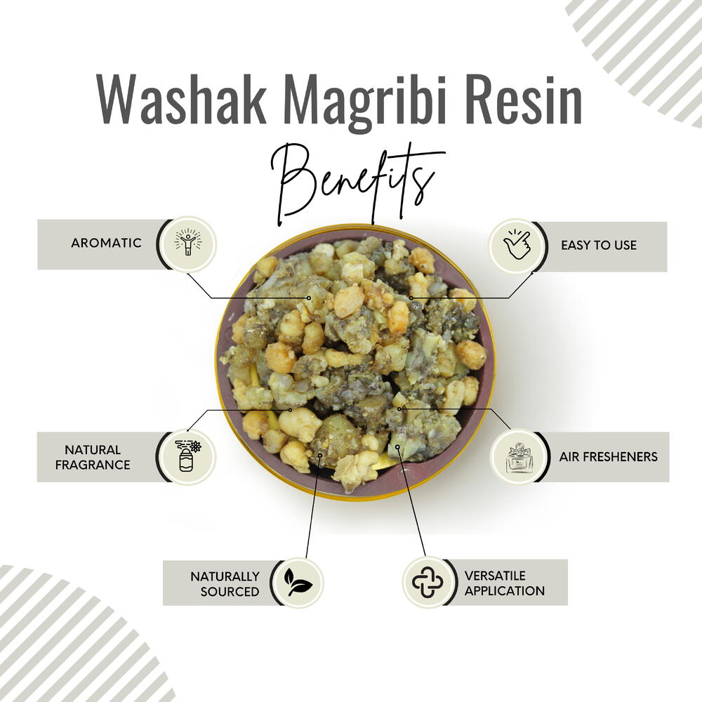 La résine d'encens Washak Magribi est une substance naturelle parfumée et précieuse, riche d'une riche tradition et d'une signification cérémonielle. Récoltée sur le boswellia, notamment au Maghreb, en Afrique du Nord, cette résine aromatique est vénérée pour ses vertus depuis des siècles. Notre résine d'encens Washak Magribi est récoltée et cultivée au Maghreb selon des méthodes traditionnelles et durables. 100 % pure et sans additifs, elle garantit une expérience authentique et pure. La résine d'encens est connue pour son utilisation lors de cérémonies spirituelles et religieuses. Elle est souvent brûlée comme encens pour créer un sentiment de révérence, de purification et de connexion au divin. Son parfum envoûtant en fait un ingrédient recherché pour la création de parfums et fragrances naturels. Son arôme terreux et résineux apporte profondeur et caractère aux senteurs. Imprégnez-vous de la diversité culturelle et du patrimoine du Maghreb en intégrant la résine d'encens Washak Magribi à vos pratiques spirituelles et de bien-être. Il vous permet de vous connecter aux traditions anciennes et à leur sagesse intemporelle.