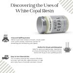 Includes triangle charcoal tablet for easy and efficient burning White copal premium incense resin, featuring notes of citrus, mint, and forest Each resinous piece emits a captivating aroma that invigorates the senses Perfect for creating an uplifting ambiance, enhancing focus