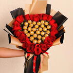 24 roses rouges 30 chocolats Ferrero et une carte de vœux gratuite