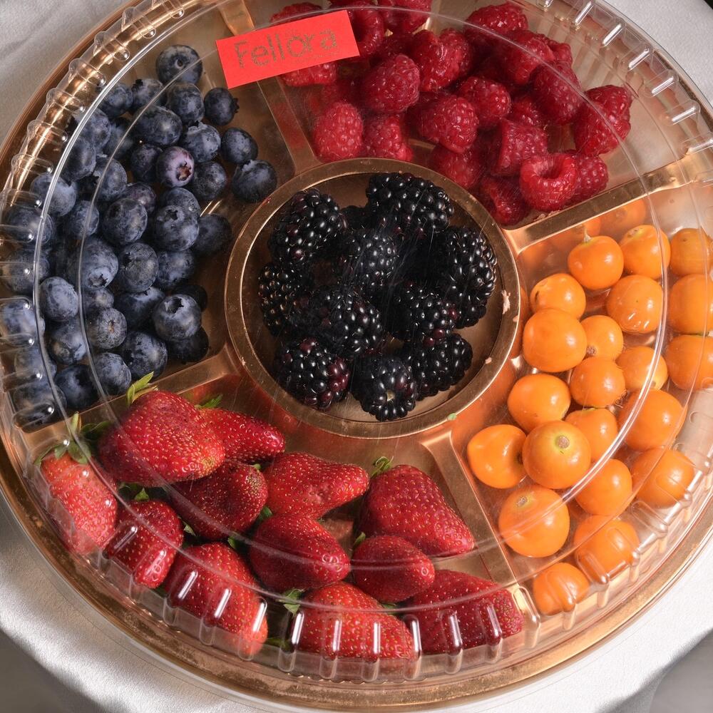 Régalez-vous du mariage vibrant de saveurs sucrées et acidulées avec notre Bouquet de baies. Cette somptueuse sélection de framboises, myrtilles, baies dorées et fraises succulentes a été cueillie à la main pour garantir la qualité. En tout, elles pèsent un impressionnant 700 grammes ! Soigneusement disposé dans un plateau en plastique résistant, cet assortiment de baies comprend également une sélection de 125 mûres délicatement cueillies. Notre Bouquet de baies est un cadeau idéal, un centre de table parfait ou à déguster à tout moment où vous avez besoin d'une dose supplémentaire de baies. Faites plaisir à vos papilles avec ce délice naturel et coloré dès maintenant !